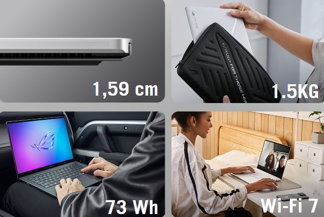 Zephyrus G14 byl vždy charakterictický svou přenosností a model pro rok 2025 není výjimkou. Tento úžasný herní stroj je skutečně tenký a lehký, váží pouhých 1,5 kg a některé modely mají tloušťku pouhých 1,59 cm. V kombinaci s 73Wh baterií, která podporuje rychlé nabíjení z 0 na 50 % za pouhých 30 minut, a podporou bezdrátových sítí Wi-Fi 7 představuje Zephyrus G14 dokonalý stroj k hraní i práci pro ty, kteří jsou často na cestách.