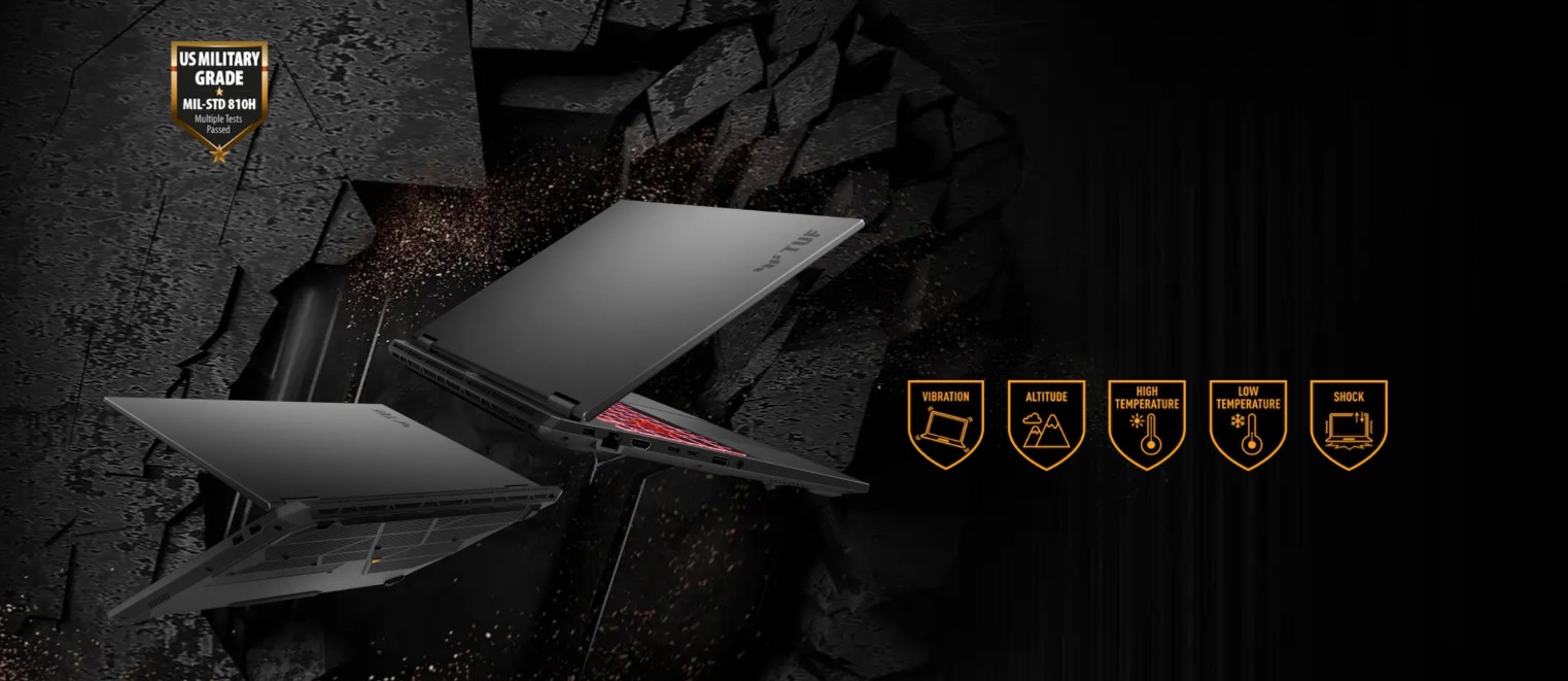 Aby tyto notebooky získaly označení TUF Gaming, musejí úspěšně obstát v náročných testech baterie podle normy MIL-STD-810H. Testovaná zařízení jsou vystavena pádům, vibracím, vlhkosti a extrémním teplotám, aby byla zajištěna jejich spolehlivost. Notebook A16 je spolehlivý i v těch nejnáročnějších podmínkách a je více než schopen odolat náhodným nárazům a pádům, které přináší běžný život.