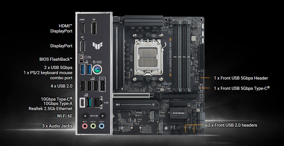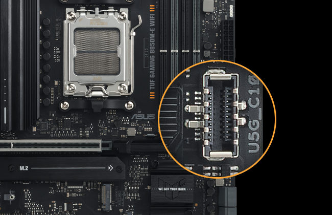 ASUS TUF GAMING B850M-E WIFI využívá všechny základní prvky nejnovějších procesorů AMD Ryzen a kombinuje je s funkcemi připravenými na hry a osvědčenou odolností. Tato základní deska je vybavena komponenty vojenské kvality, vylepšeným řešením napájení a komplexním systémem chlazení, a tak překonává očekávání díky solidnímu a stabilnímu výkonu pro herní maratony. Základní desky TUF GAMING také procházejí náročným testováním odolnosti, aby bylo zajištěno, že zvládnou podmínky, ve kterých by jiné mohly selhat. Tato platforma poskytuje výkon a konektivitu, které vyžadují pokročilé aplikace pro počítače s umělou inteligencí.