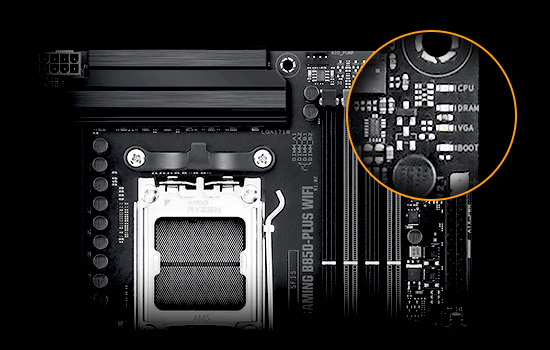 Vestavěné kontrolky Q-LED pro řešení problémů poskytují stavitelům počítačů rychlý indikátor, který potvrzuje, že klíčové komponenty - procesor, paměť RAM, grafická karta, úložná zařízení - fungují během spuštění normálně. Může je také upozornit na to, že paměťové moduly nebyly správně nainstalovány - ještě před spuštěním systému.