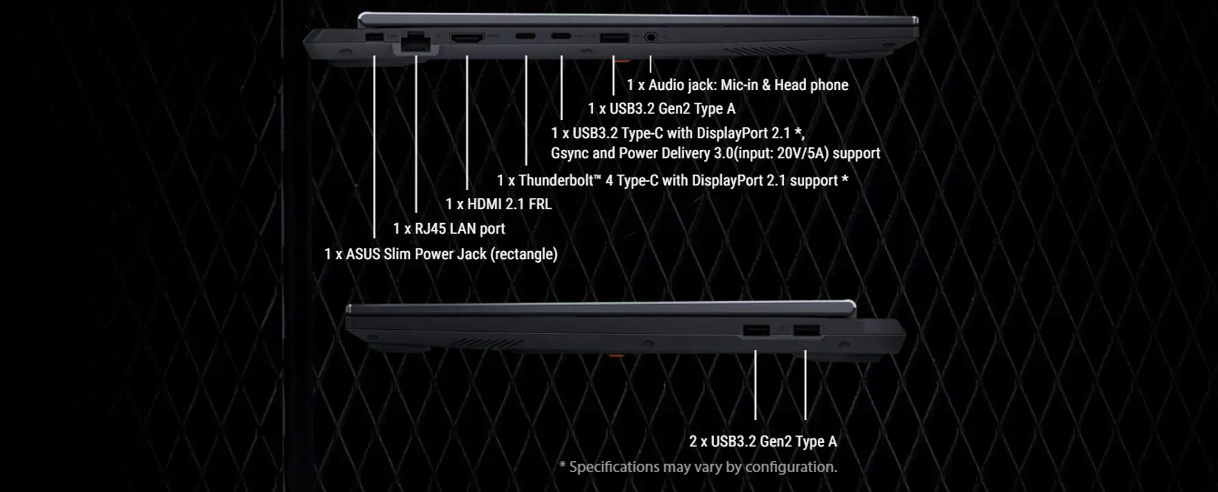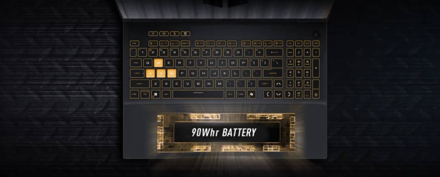 Když potřebuješ hrát nebo pracovat na cestách, má 2025 TUF Gaming F16 více než dost šťávy na to, aby ti stačil. Velká 90Wh baterie vám umožní pracovat déle mimo dosah elektrické sítě a nabíjení přes USB typu C vám umožní flexibilitu při nabíjení, pokud jste nechali zdroj doma.