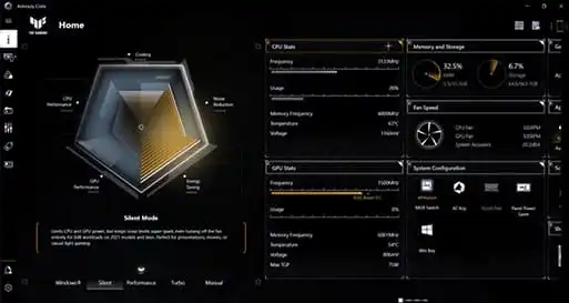 Software Armoury Crate sjednocuje ovládání systému a osvětlení do jediného, snadno použitelného nástroje. Jeho rozsáhlé možnosti přizpůsobení umožňují přizpůsobit estetické efekty, vyladit herní profily a upravit nastavení zvuku podle vašich preferencí. Pomocí profilů scénářů můžete definovat a přizpůsobit předvolby, které automaticky upraví výkon a další možnosti při spuštění oblíbených aplikací a her. S Armoury Crate získáte plnou kontrolu nad svými zážitky.
