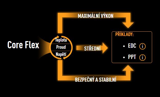 Core Flex vám umožní posouvat limity zase o něco více než dříve, protože dokáže ovládat napájení a teploty novými kreativními způsoby. V nejjednodušší podobě můžete nastavit body přerušení, které postupně snižují frekvenci jádra procesoru, když se zvýší teplota nebo proud. Systém je však velmi přizpůsobivý a podporuje několik uživatelem řízených funkcí, které mohou nezávisle upravovat limity napájení, proudu a teploty. Výkon procesoru proto můžete vyladit podle svého.