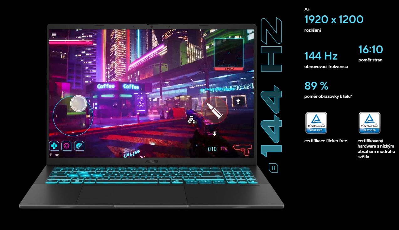 Vydejte se na vzrušující dobrodružství s notebookem ASUS V16. Jeho atraktivní povrchová úprava Matte Black vyzařuje dokonalý styl a hedvábná textura přispívá k bezchybnému zážitku z hraní. Toto jedinečné provedení ho odlišuje od konkurence.