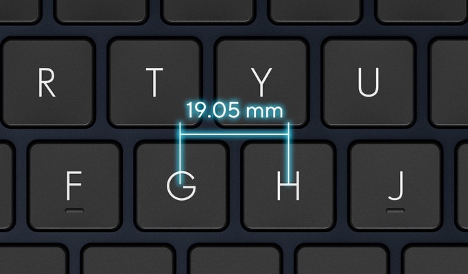 Rozteč kláves plné velikosti 19,05 mm je stejná jako u desktopové klávesnice, takže můžete psát pohodlně a přesně.