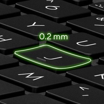 Prohnutí kláves o 0,2 mm je navrženo tak, aby kopírovalo tvar konečků prstů. Jemné a plynulé prohnutí kláves slouží pro vaše pohodlí a současně přesnost psaní. Vaše prsty jsou jemně vedeny do ideálního místa kontaktu s klávesami.