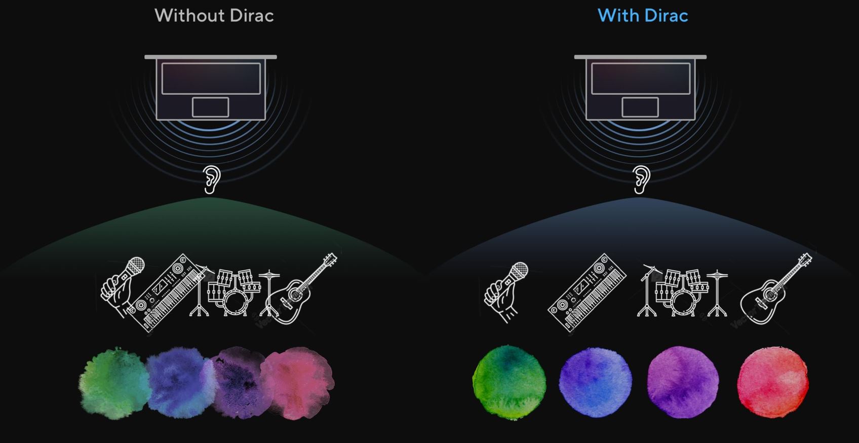 Tento audio systém, který byl navržen s pomocí odborníků na audio ze společnosti Dirac, dodavatele profesionálních audio řešení, přináší nejvíce pohlcující, nejčistší a nejvyváženější zvuk, jaký jste kdy na PC, notebooku nebo tabletu slyšeli. Uslyšíte širší a hlubší zvukový prostor, než si dokážete představit, a naplno využijete zvukový potenciál svého notebooku.