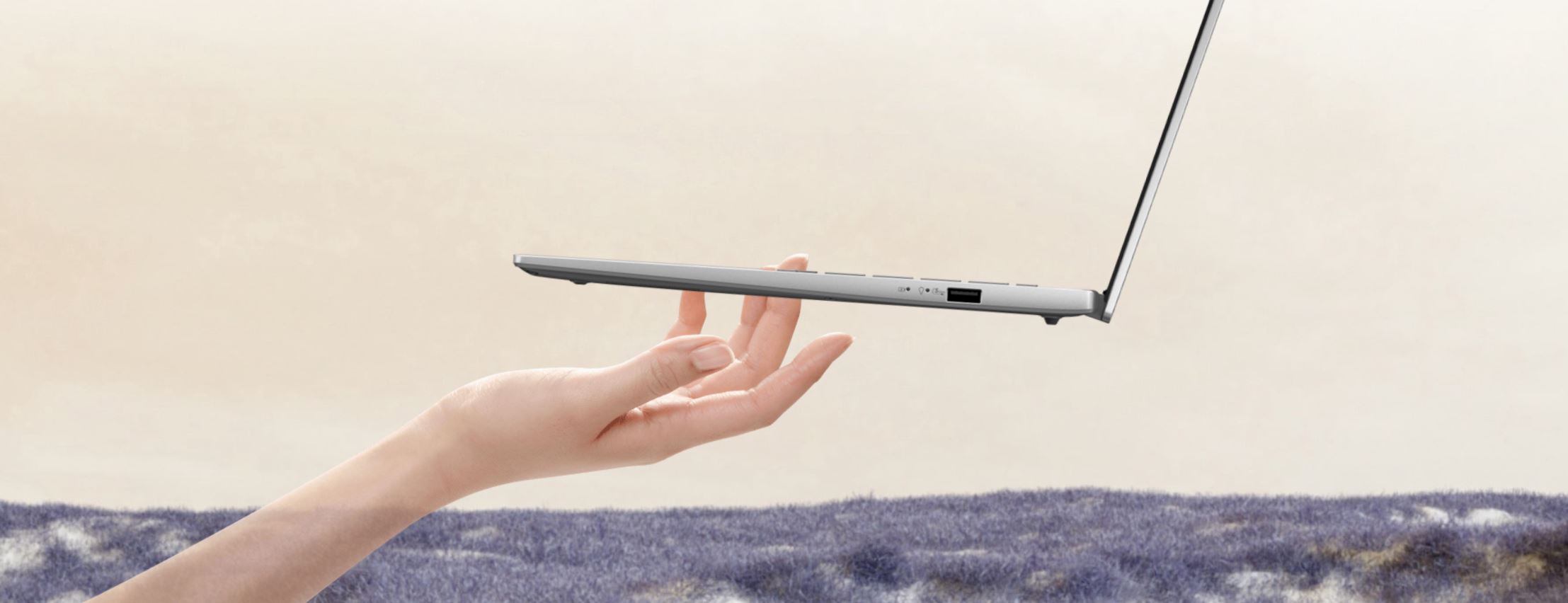 Harmonická neutrální barevná paleta a kovový povrch ztělesňují podstatu moderního životního stylu. Tento design je elegantní, ale nenápadný, což dělá z notebooku ideálního společníka pro tvůrčí úsilí i chvíle odpočinku.