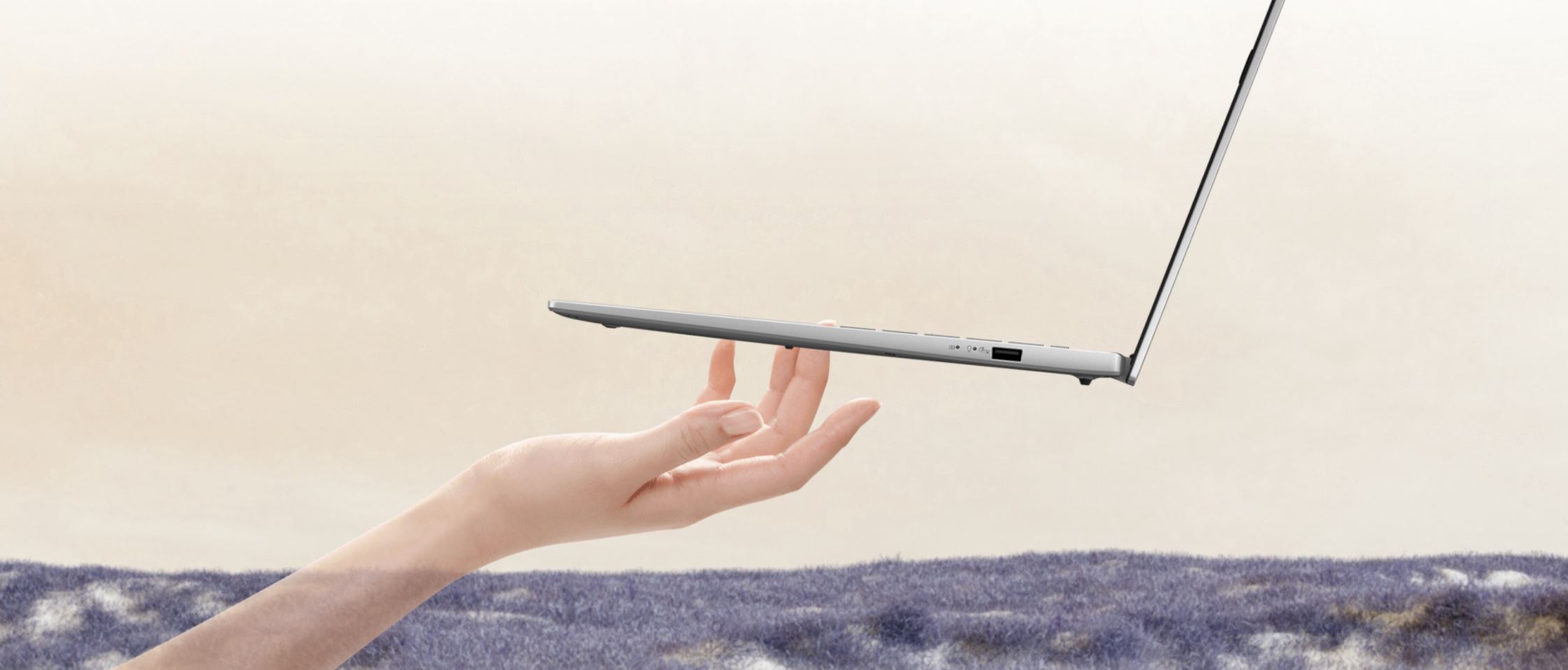 Harmonická neutrální barevná paleta a kovový povrch ztělesňují podstatu moderního životního stylu. Tento design je elegantní, ale nenápadný, což dělá z notebooku ideálního společníka pro tvůrčí úsilí i chvíle odpočinku.