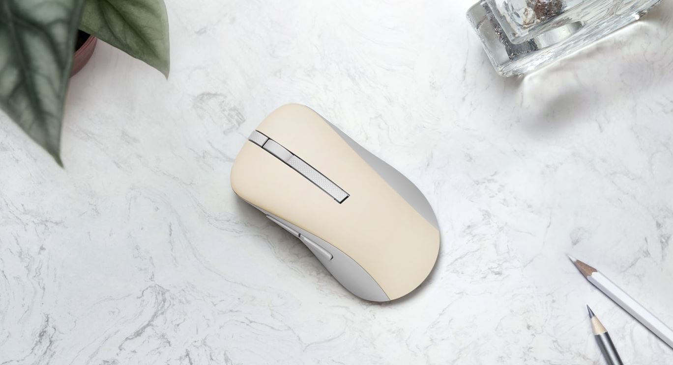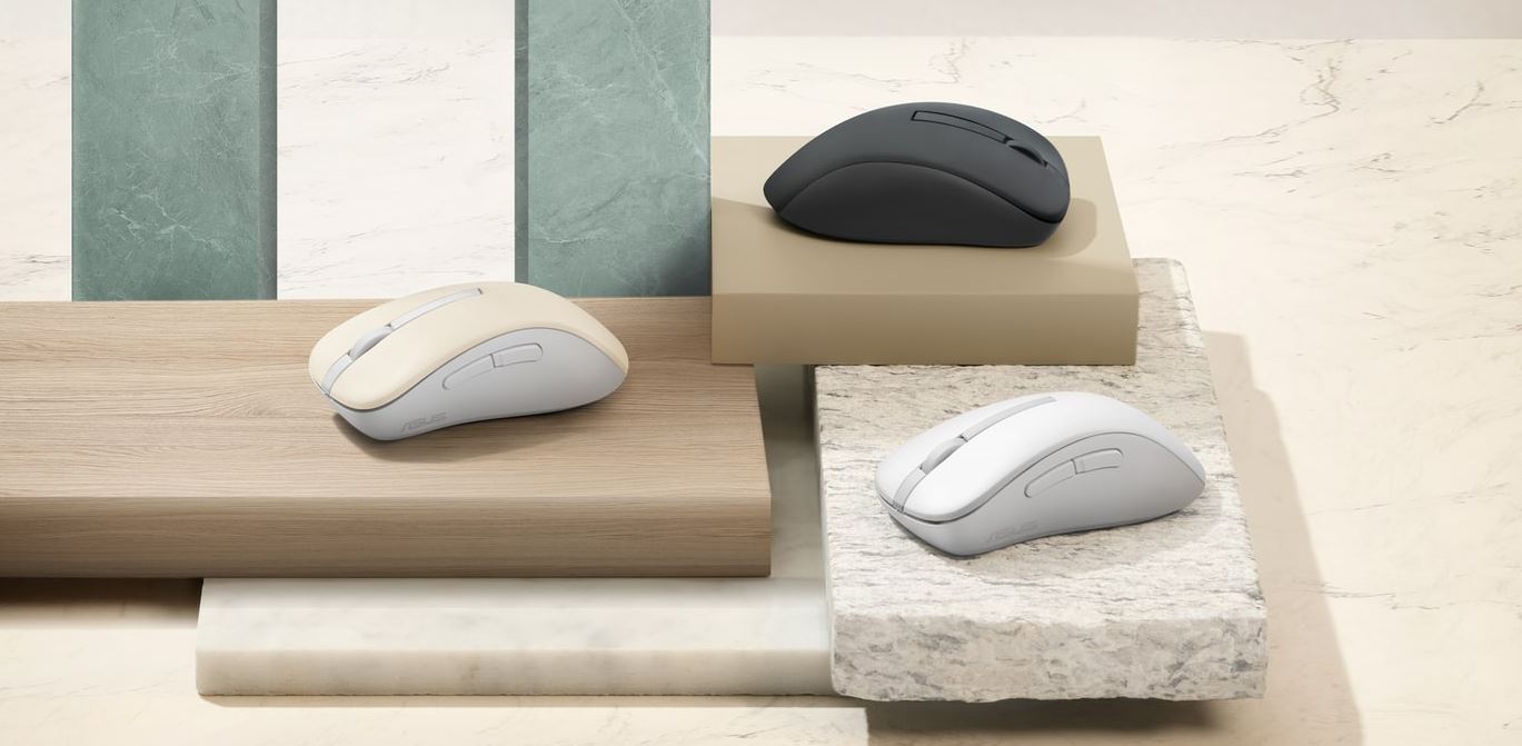 ASUS Wireless Mouse MD102 je k dispozici v barevném provedení White, Dark Gray nebo Oat Milk a nabízí neutrální styl, který se skvěle hodí téměř do každé domácnosti nebo kanceláře. Jemné reflexní akcenty kolem rolovacího kolečka jí dodávají punc elegance.