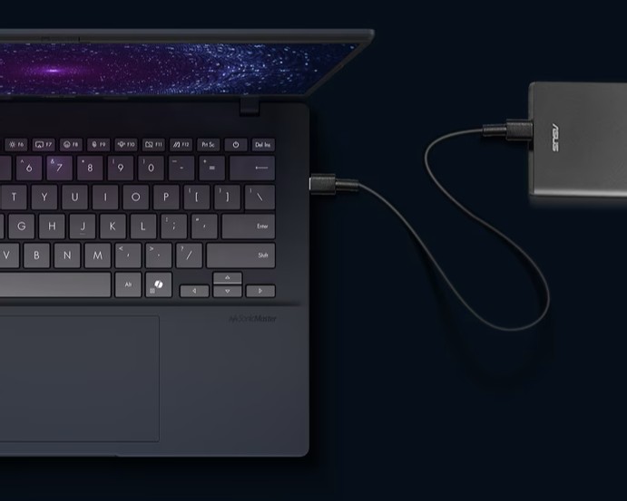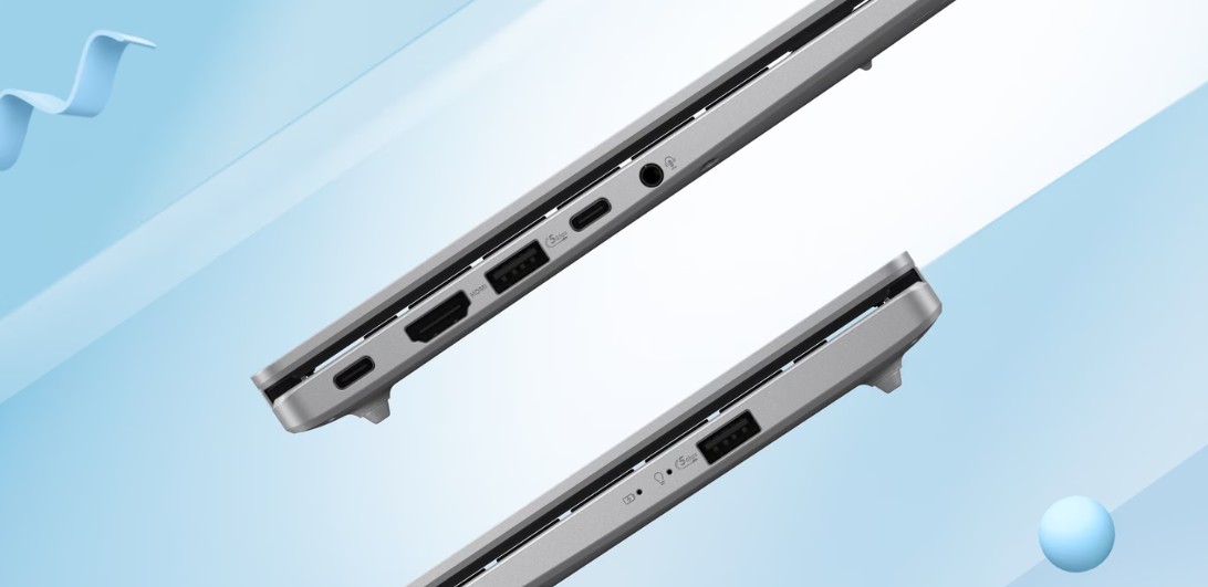 Díky komplexním vstupním a výstupním portům je ASUS Vivobook 14 vaším dokonalým pracovním pomocníkem. Je vybaven dvěma porty USB 3.2 Gen 1 Type-A, dvěma porty USB 3.2 Gen 1 Type-C s funkcí rychlého nabíjení, portem HDMI a kombinovaným audio konektorem. Navíc díky Wi-Fi 6 si užijete plynulý zážitek z cloudové umělé inteligence.
