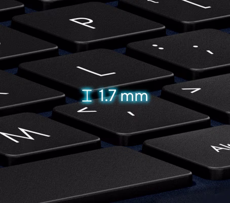 Dlouhý zdvih kláves 1,7 mm vám umožňuje psát bez nutnosti vyvíjet přílišnou sílu. Speciální gumová kopule navržená společností ASUS zaručuje, že síla stisku klávesy je doprovázena přesně takovým hmatovým odporem, jaký potřebujete pro příjemný úchop.