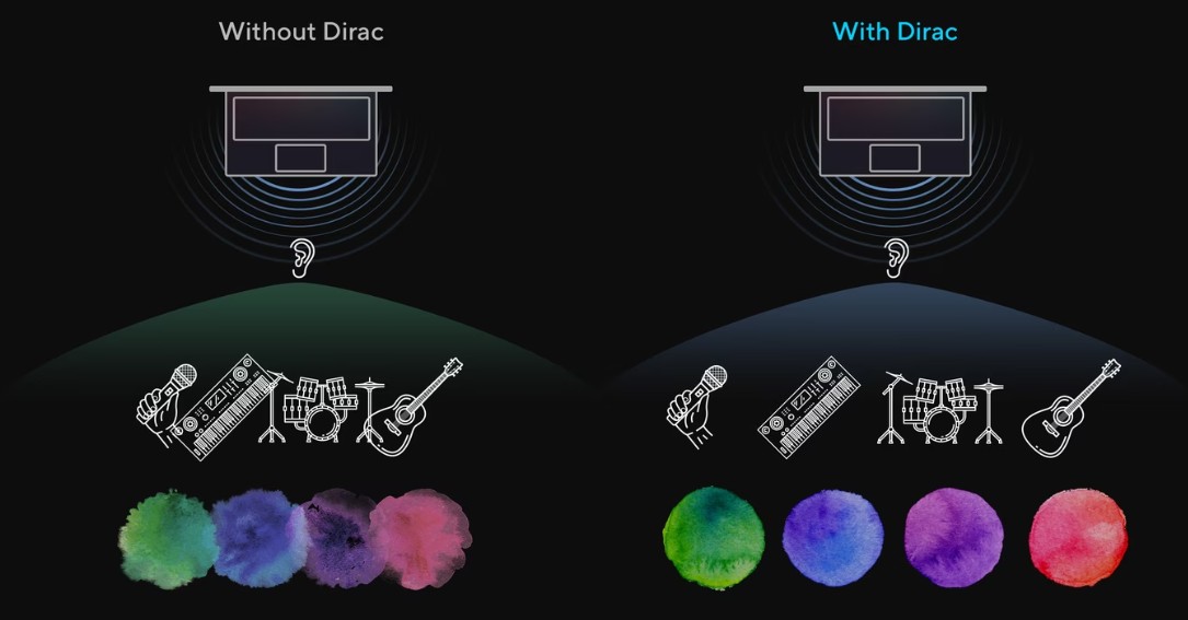 Audio systém, navržený ve spolupráci s odborníky na zvuk z firmy Dirac, profesionálního poskytovatele audio řešení, přináší nejvíce pohlcující, čistý a vyvážený zvukový zážitek, jaký jste kdy na PC, notebooku nebo tabletu zažili. Uslyšíte širší a hlubší zvukovou kulisu, než jste si dokázali představit, a plně tak využijete zvukový potenciál svého notebooku.