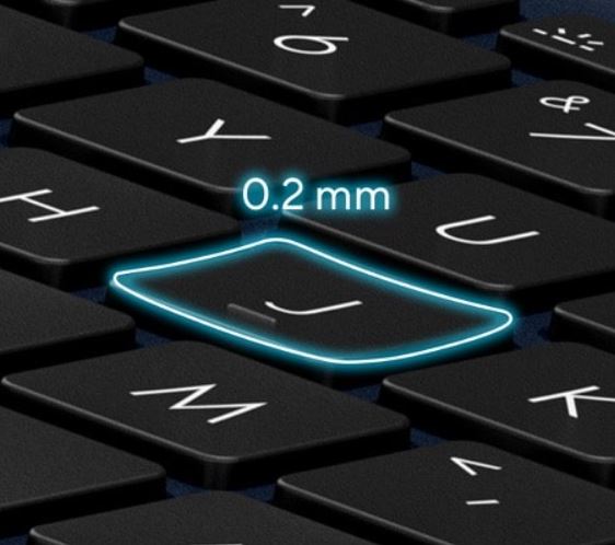 0,2mm prohnutí kláves je navrženo tak, aby odpovídalo tvaru konečků prstů. Vaše prsty jsou díky tomu jemně vedeny do ideálního místa kontaktu s klávesami.