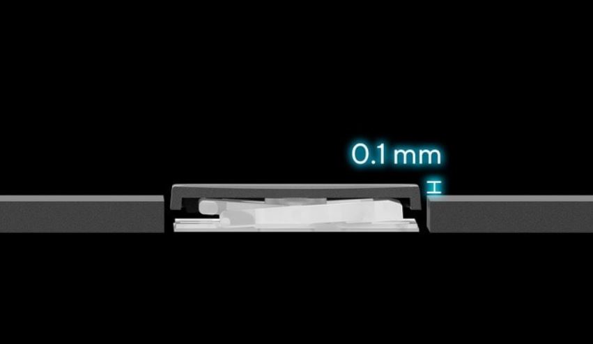 Při plném stisknutí se klávesy na klávesnici ErgoSense nepropadají pod úroveň povrchu klávesnice. Klávesy zůstávají minimálně 0,1 mm nad povrchem šasi, což vám zajistí pohodlné psaní.