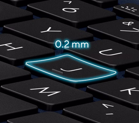 Dlouhý zdvih kláves 1,7 mm vám umožňuje psát bez nutnosti vyvíjet přílišnou sílu. Speciální gumová kopule navržená společností ASUS zaručuje, že síla stisku klávesy je doprovázena přesně takovým hmatovým odporem, jaký potřebujete pro příjemný úchop.