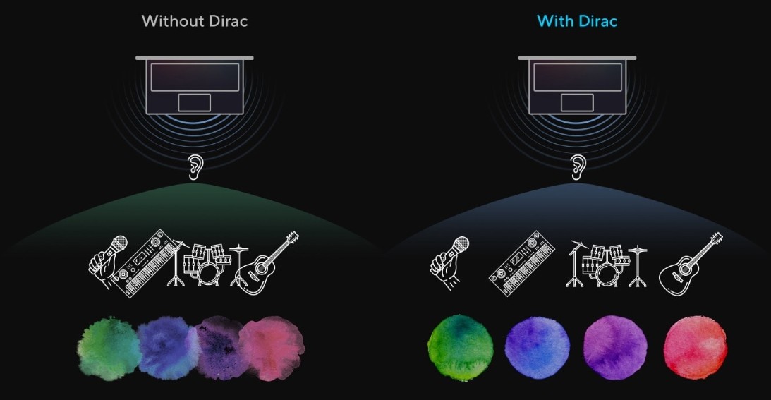 Tento audio systém, který byl navržen s pomocí odborníků na audio ze společnosti Dirac, dodavatele profesionálních audio řešení, přináší nejvíce pohlcující, nejčistší a nejvyváženější zvuk, jaký jste kdy na PC, notebooku nebo tabletu slyšeli. Uslyšíte širší a hlubší zvukový prostor, než si dokážete představit, a naplno využijete zvukový potenciál svého notebooku.