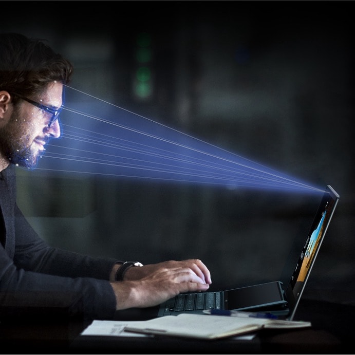 Windows Hello a infračervená (IR) kamera umožňuje rychlé a bezpečné odemknutí notebooku.