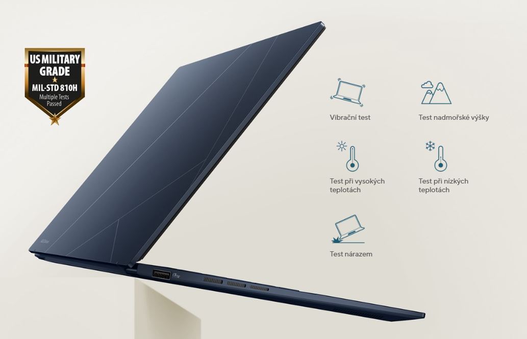 Spotřebitelské notebooky ASUS splňují mimořádně náročný vojenský standard MIL-STD 810H, který garantuje spolehlivost a odolnost. Procházejí náročným testovacím režimem, který zahrnuje rozšířené testy pro provoz v extrémních podmínkách. Tyto faktory také prospívají dlouhé životnosti notebooků, a tím i udržitelnosti, takže můžete pracovat, cestovat nebo odpočívat s jistotou, že váš notebook ASUS je připraven na skutečný svět - dnes i v dalších letech.