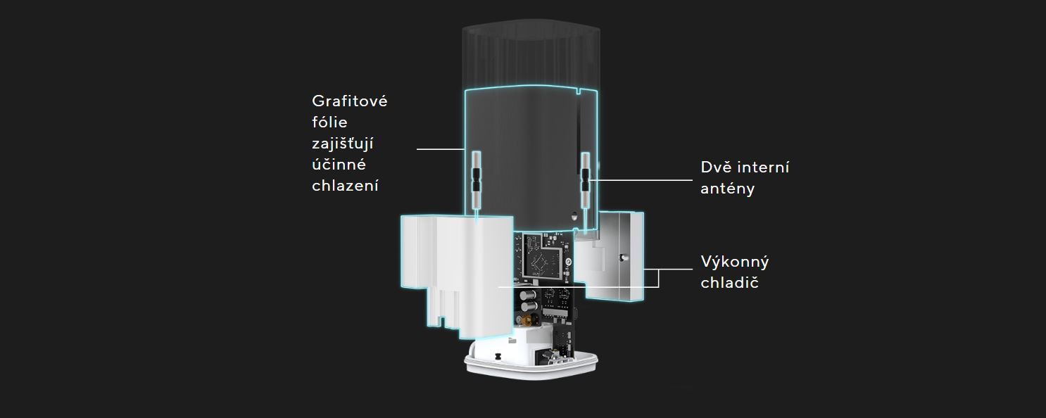ZenWiFi BD4 Outdoor je vybaven výkonným chladičem a grafitovými fóliemi kvůli lepšímu odvodu tepla, což zajišťuje optimální stabilitu i v náročných podmínkách. Je vyroben z vysoce tepelně odolných materiálů, jako je pevný polykarbonátový plast na vnějším plášti, a odolává tak náročným podmínkám. Nerezové šrouby zabraňují korozi a zajišťují dlouhou životnost.