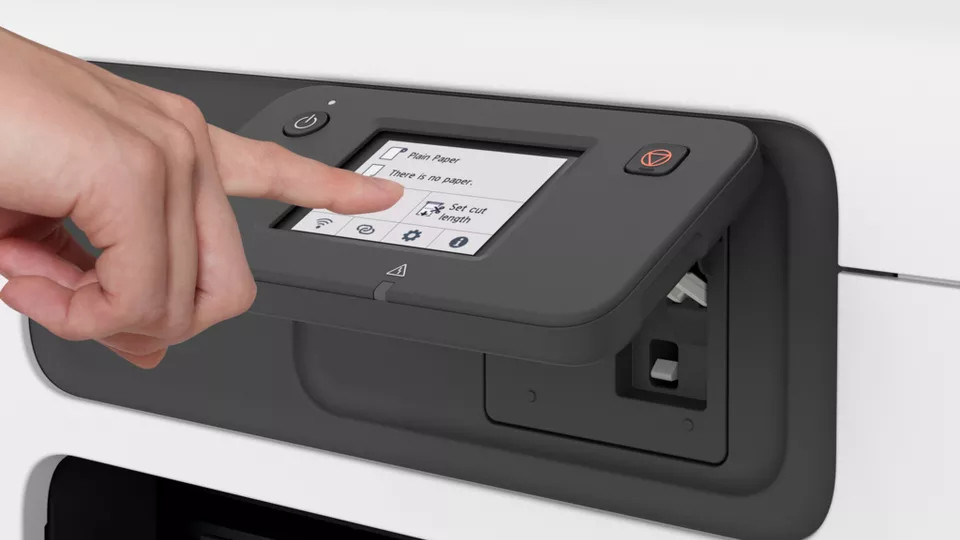 Bezhřídelový držák role a optimalizovaný postup nastavení role usnadňují přípravu a výklopný ovládací panel umožňuje lepší viditelnost informací v různých výškách. Vestavěný automatický podavač listů umožňuje při tisku přechod mezi rolí papíru a řezanými listy bez nutnosti lidského zásahu, což umožňuje širokou škálu aplikací prostřednictvím přijetí různých velikostí řezaných listů.