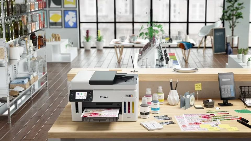 S automatickým podavačem dokumentů na 50 listů, výklopnou, 6,9cm barevnou dotykovou obrazovkou a zásobníkem papíru až na 350 listů bude práce při plnění náročných termínů lehčí. Zpracování různých médií – dokonce i tisk bannerů o délce až 1,2 m.