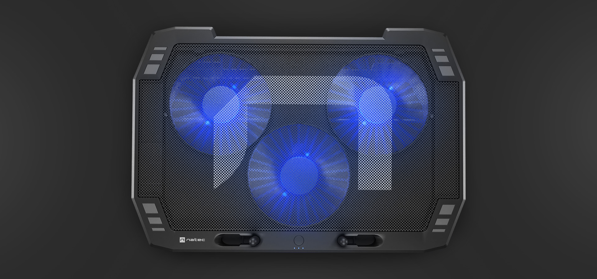 Natec Oriole si poradí s vysokými teplotami vašeho notebooku. Dostatečné chlazení zajišťují 3 účinné 120mm interní ventilátory. Navíc díky třístupňové regulaci otáček můžete stojan snadno přizpůsobit svému stylu práce, ať už vás zajímá napínavé hraní nebo práce. Vsaďte na ticho a snižte otáčky ventilátorů na minimum. Vypořádejte se s teplotami a donuťte ventilátory pracovat na maximální rychlost. Vše záleží jen na vás.