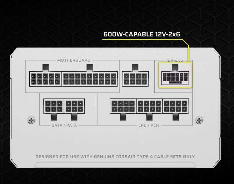 Standard ATX 3.1 vyžaduje vysokou úroveň spolehlivosti a energetické účinnosti. Ačkoli mnoho napájecích zdrojů CORSAIR tyto požadavky splňuje, napájecí zdroje řady RMe jsou formálně certifikovány pro shodu s ATX 3.1.Součástí balení je kabel PCIe 5.1 12V-2x6 GPU pro použití s moderními grafickými kartami, jako je NVIDIA® GeForce RTX™ řady 40.