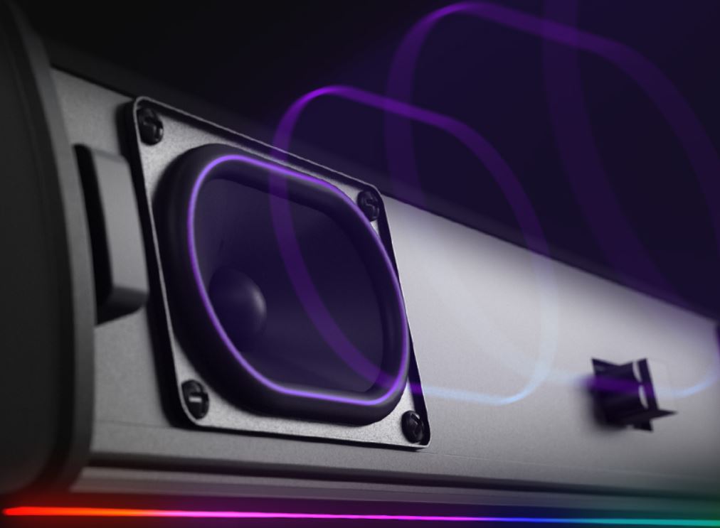 Užívejte si konzistentní zvukový výkon s hlubokými basy díky výkonným racetrack měničům a vestavěnému portu na zadní straně. S maximálním výkonem až 60 W zní vše, od šeptaných dialogů až po ohlušující exploze, jasně a působivě.