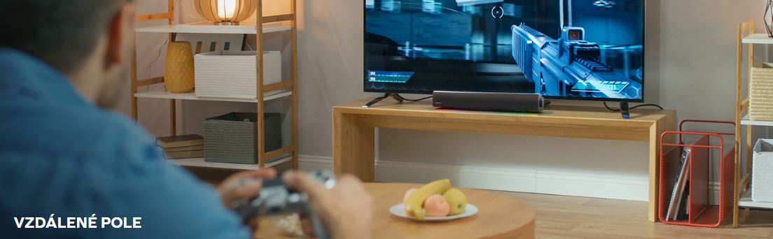Technologie SuperWide™ rozšiřuje zvukovou scénu a nabízí pohlcující zážitek i přes kompaktní rozměry. SuperWide nabízí 2 režimy: Near Field pro stolní použití a Far Field pro obývací pokoj. Nyní si můžete užívat hraní s širokou zvukovou scénou ve svém pokoji nebo filmy v obývacím pokoji.
