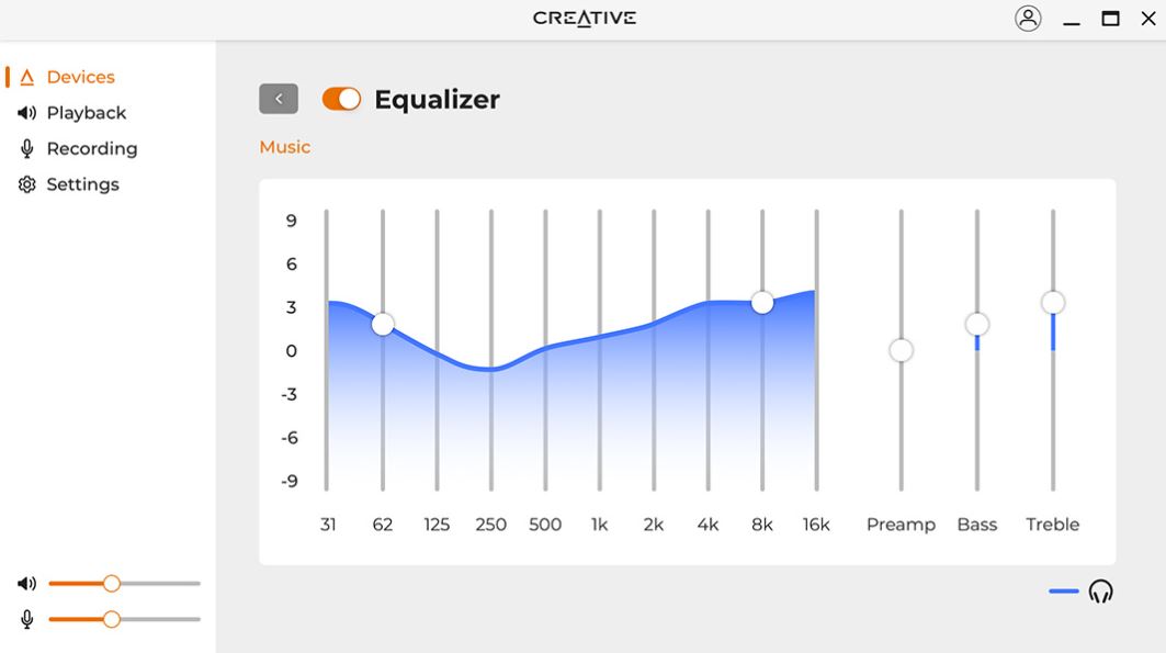 Ať už máte ‚basovou hlavu‘ nebo jste více zaměřeni na poslech všech nuancí vokálů, nová kreativní aplikace vám umožní změnit nastavení ekvalizéru tak, jak se vám to líbí v kabelovém režimu. Získejte přístup k přizpůsobení grafického ekvalizéru Sound Blaster, sadě SmartComms a dalším nastavením přehrávání a mikrofonu v kreativní aplikaci vše v jednom!