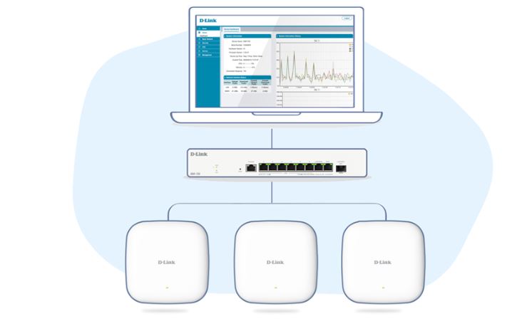Prostřednictvím intuitivního webového rozhraní DBR-700 centrálně monitoruje stav celé sítě a snadno spravuje konfiguraci pokročilých funkcí. Integrovaná bezdrátová správa podporuje až 15 zařízení Smart AP (DBR-X3000-AP), což zjednodušuje administrativní úkoly, jako je nastavení rádia, monitorování klientů a řízení přístupu. Bezproblémová správa a přehled o aktivitě v síti v reálném čase pomáhají majitelům malých firem zvýšit celkovou provozní efektivitu.