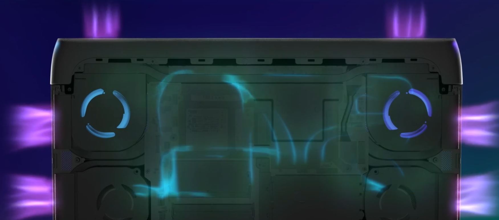 Nová struktura Cryo-Chamber od Area-51, vyvinutá našimi inženýry, se nachází ve spodní části notebooku a soustřeďuje vzduch na klíčové komponenty, kde je to nejvíce potřeba. Cryo-Chamber podpírá notebook a zajišťuje mnohem větší přívod vzduchu, čímž podporuje zvýšený průtok vzduchu. Je vybavena průhledným panelem Gorilla Glass, který je k dispozici u konfigurací s NVIDIA® GeForce RTX™ 5070 Ti nebo vyšší, a umožňuje pohled na ventilátory AlienFX. Tato struktura v kombinaci s větším množstvím mědi a většími ventilátory než kdykoli předtím umožňuje vyšší výkonový strop až 240 W TPP bez zvýšení hlučnosti.