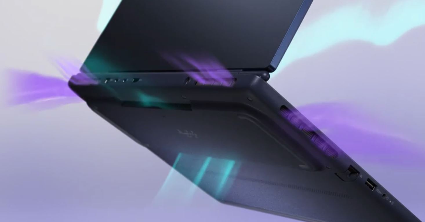 Dva ventilátory s ultratenkými lopatkami nasávají chladný vzduch z horní a spodní části a horký vzduch odvádějí ven čtyřmi otvory, což přispívá k vyššímu výkonu.