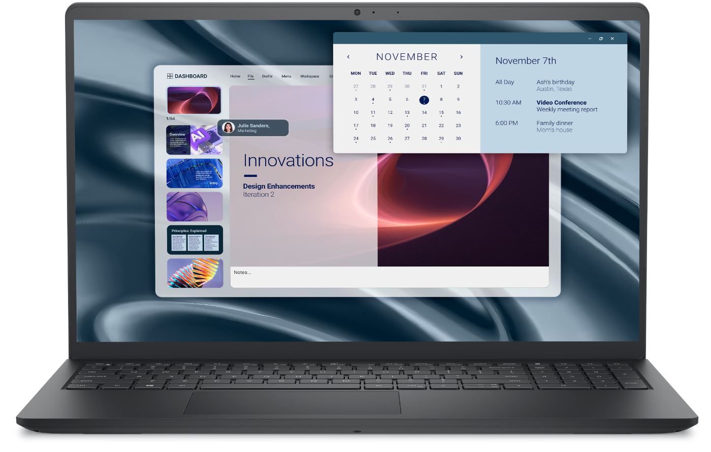 Buďte připraveni na každou schůzku díky webové kameře s rozlišením až FHD a krytkou pro ochranu soukromí – vždy budete vypadat skvěle. Integrované jednoduché nebo duální mikrofony s redukcí šumu pomocí umělé inteligence potlačují rušivé zvuky a zajišťují, že váš hlas – a vaše nápady – vždy vyniknou. Zvládněte náročné dny v pohodlí díky technologii Dell ComfortView, která snižuje namáhání očí a pomáhá vám soustředit se, být produktivní a soustředit se na to nejdůležitější.