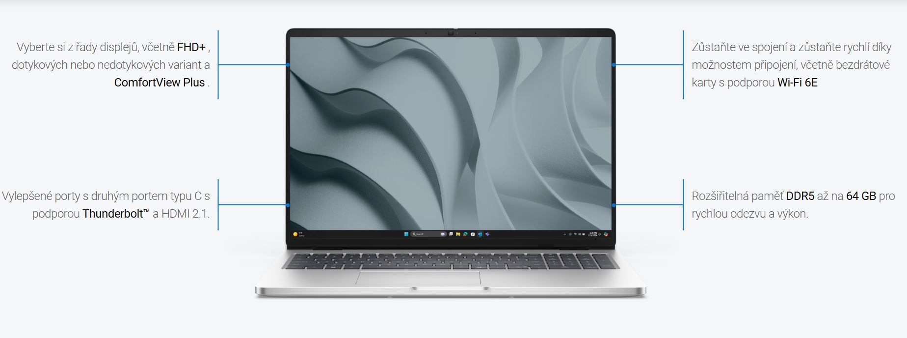 Dell Pro 16 má o 10 % větší plochu obrazovky než předchůdce.