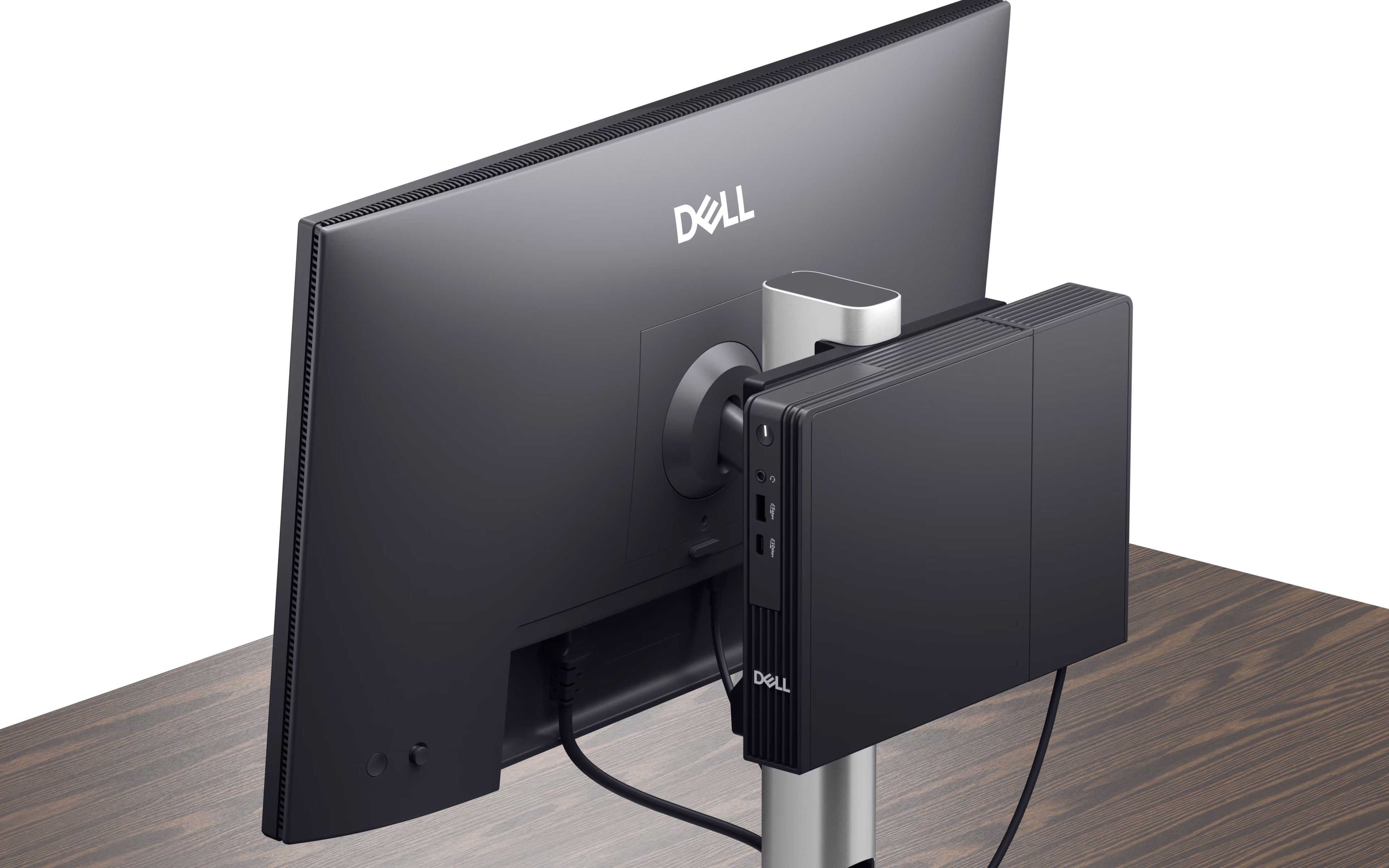 Udržujte svůj pracovní prostor přehledný díky široké škále volitelných držáků a stojanů. Můžete sestavit kompletní systém typu „vše v jednom“ připojením monitoru s rozhraním Dell USB-C Hub ke stojanu Dell Pro Micro All-in-One, nebo jej použít jako součást sestavy Dell pro videokonference.