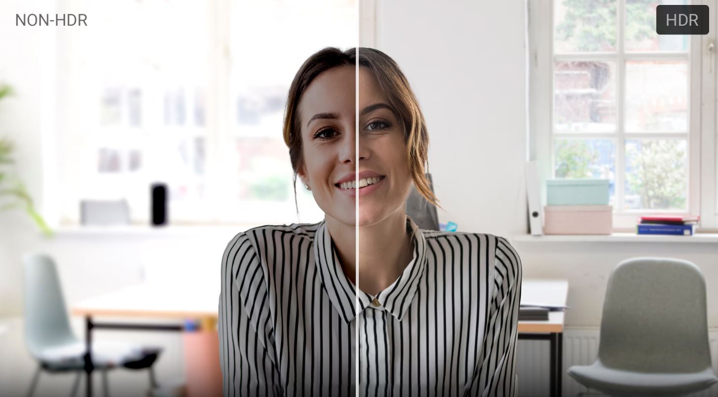 Vypadejte skvěle i při vysoce kontrastním osvětlení díky kameře FHD HDR. Technologie vysokého dynamického rozsahu (HDR) automaticky upravuje zřetelnost v jakémkoli světelném prostředí včetně slabého osvětlení, přímého slunečního světla nebo náročných světelných podmínek s větším tonálním rozsahem.