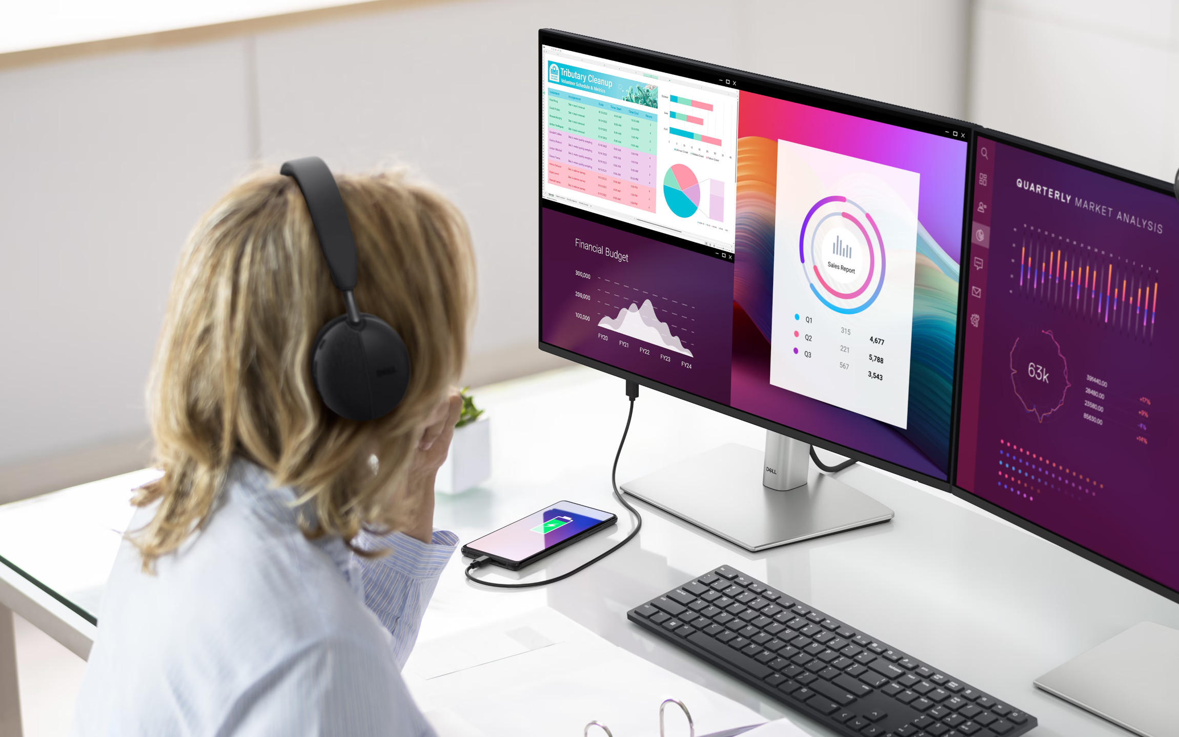 Postavte jej na stůl nebo položte na plocho jako podstavec pod monitor a ušetřete tak cenné místo na stole. Udržujte jej v perfektním stavu pomocí volitelného prachového filtru, který chrání komponenty, a zredukujte nepořádek v kabelech pomocí volitelného zadního krytu kabelů Dell Pro Slim Cable Cover.