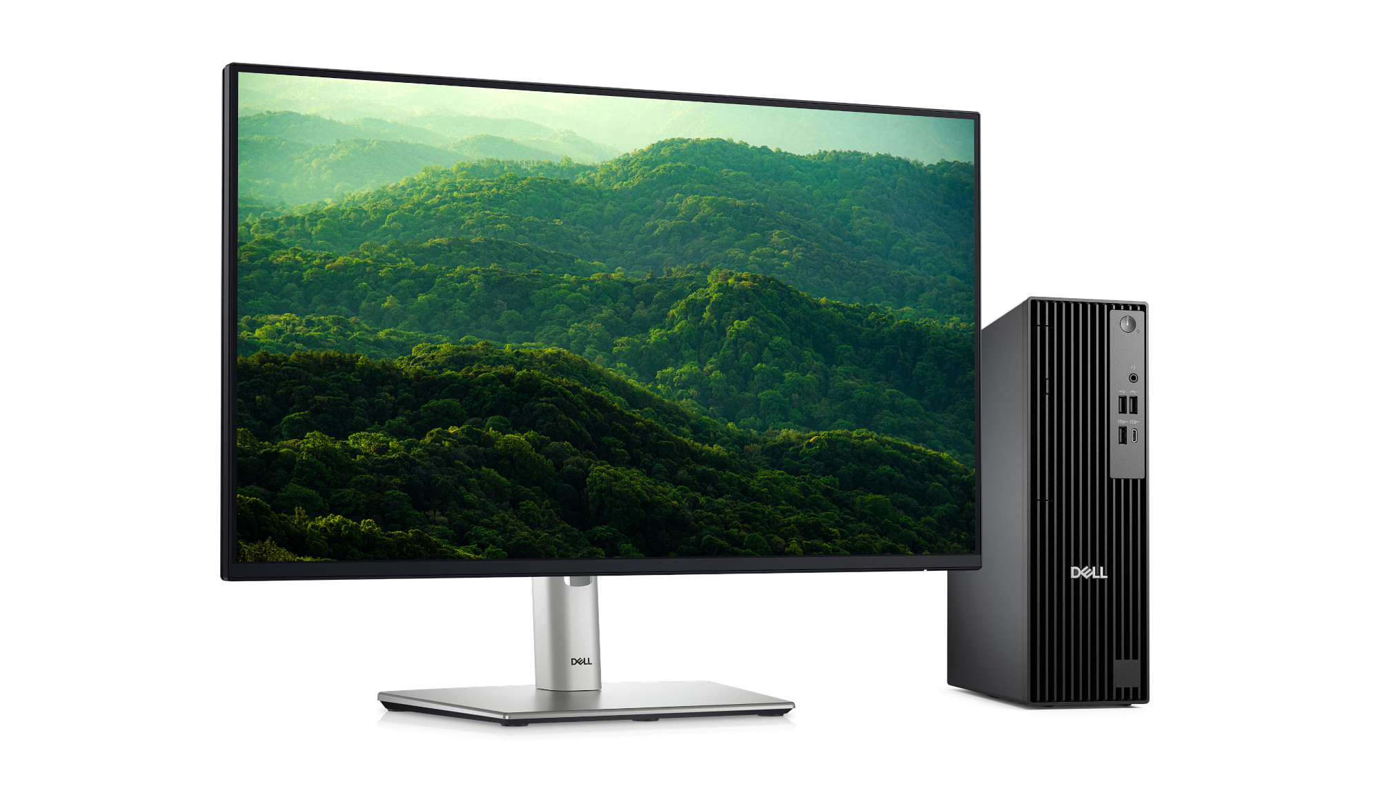Tento kompaktní a moderní stolní počítač je navržen s ohledem na udržitelnost z recyklovaných materiálů a splňuje klíčové environmentální normy.