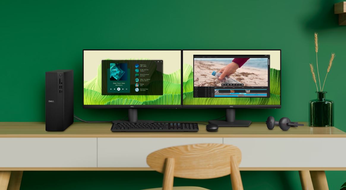 Desktop Dell Slim Desktop je ideální pro malé pracovní prostory a bezproblémově kombinuje eleganci s udržitelností. Jeho elegantní a moderní design, vyrobený z recyklovaných materiálů a s propracovanými rohy, z něj činí stylový doplněk každé domácnosti nebo kanceláře. Dell Slim Desktop je registrován jako EPEAT Silver s technologií Climate+ a má certifikaci ENERGY STAR®.