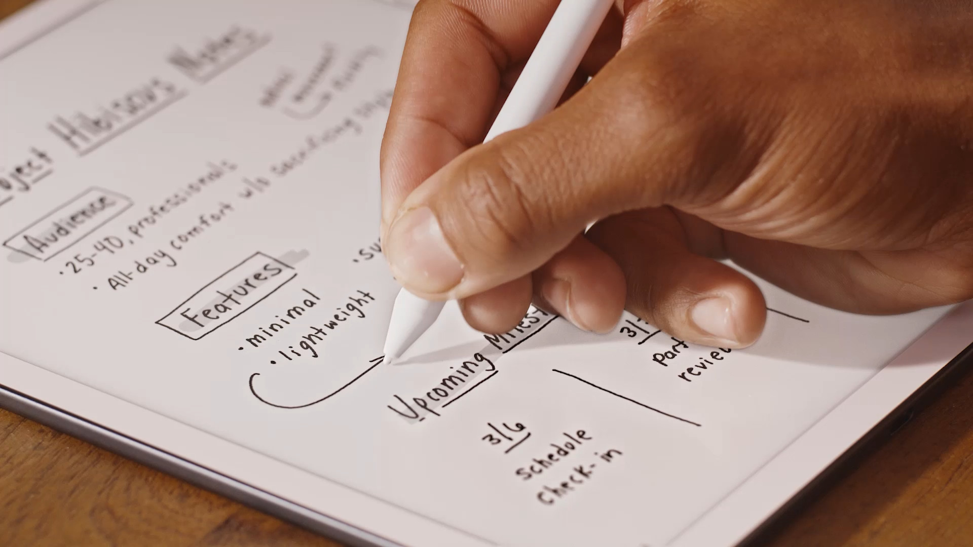 Texturovaný displej připomínající papír, navržený pro rychlé a plynulé psaní.