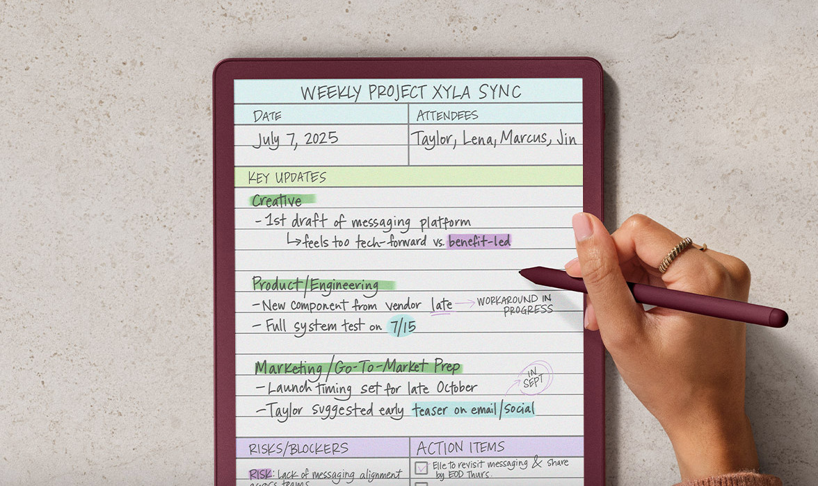 Náš dosud nejpokročilejší Kindle Scribe, přepracovaný tak, aby byl tenčí, lehčí a rychlejší, s velkým 11palcovým displejem připomínajícím papír. Vdechněte svým poznámkám pocit psaní perem na papír a využijte umělou inteligenci k vyhledávání, shrnování a odhalování zajímavých informací ze svých poznámkových bloků. K dispozici také s displejem Colorsoft, který nabízí konzistentní, příjemné barvy a píše jako skutečný inkoust.