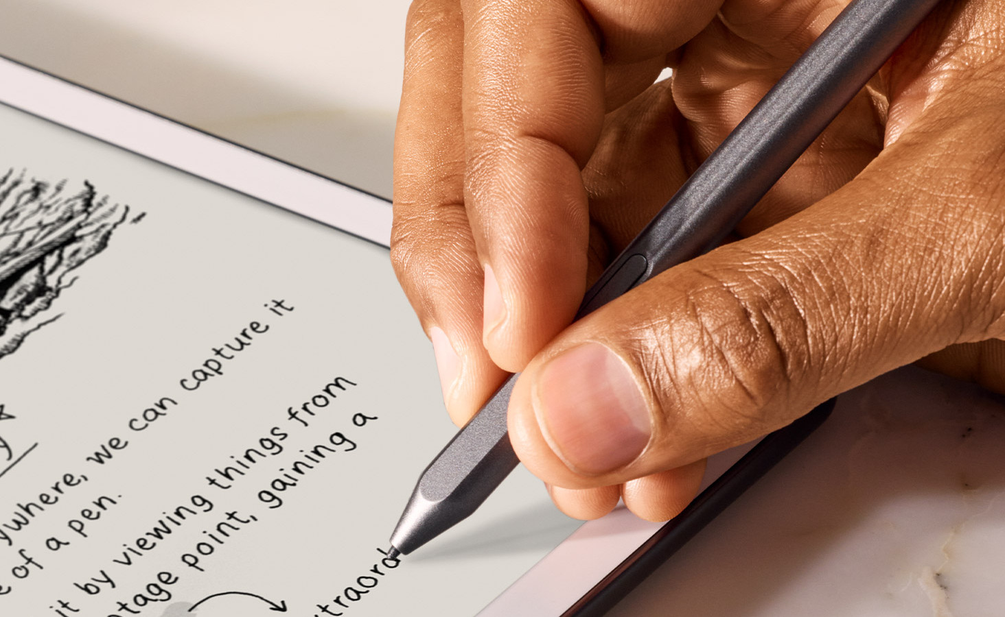 Pište bez rozptylování, stejně jako na papíře, na zařízení, které se tak cítí. Sledujte, jak se vaše myšlenky setkávají s papírem při každém tahu pera Premium Pen po texturované obrazovce.
