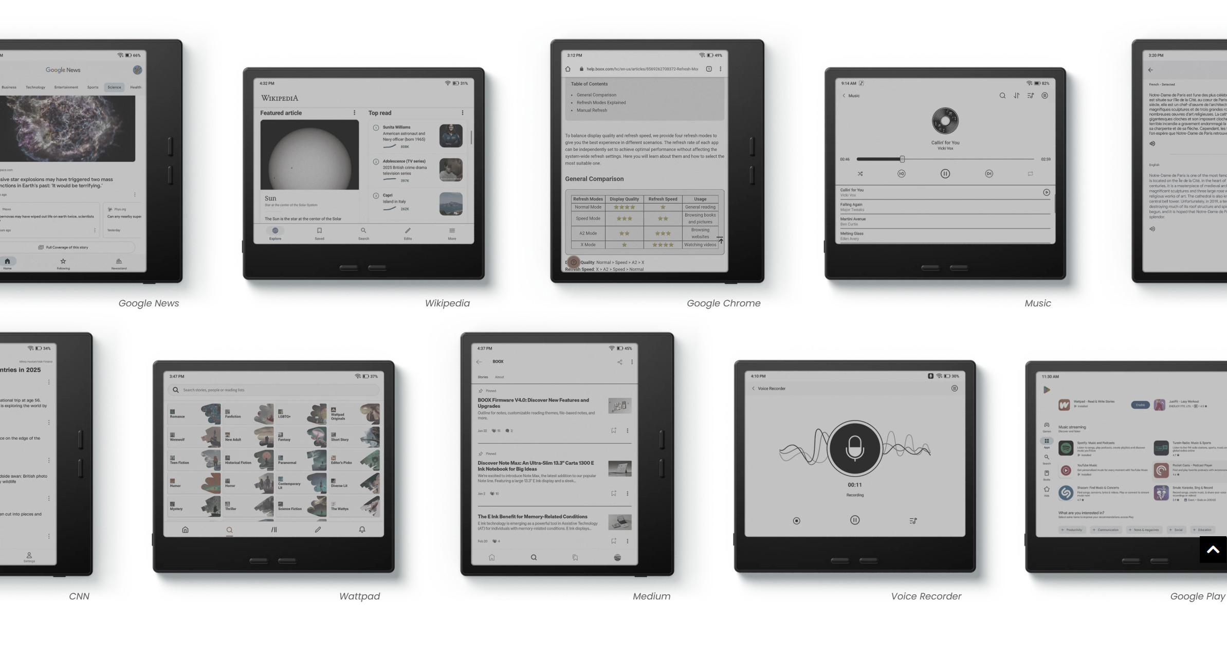 Vyberte si mezi barevnou nebo černobílou čtečkou ePaper, každá s vizuálem připomínajícím papír a elegantním kompaktním designem. Jejich odlišné displeje umožňují dva druhy zážitků.