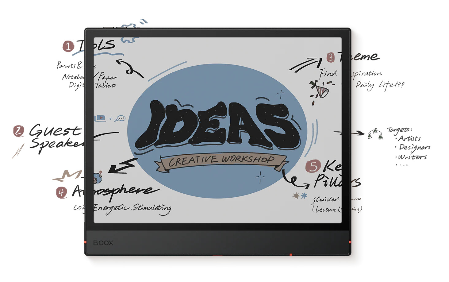 10,3palcový displej Kaleido 3 ePaper na zařízení Note Air5 C nabízí úchvatně realistické barvy a ostré detaily, které jsou zároveň šetrné k očím. Brainstormujte, prohlížejte si zprávy a pracujte na barevném plátně, které je brilantní, připomíná tisk a je citlivé.