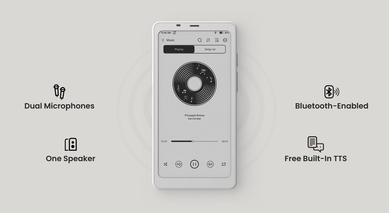 Vychutnejte si podmanivou hudbu během klidného odpoledne, poslouchejte svůj oblíbený podcast během cesty do práce nebo pokračujte v nedokončeném příběhu s TTS při procházce. Palma 2 je vždy k dispozici pro vaše relaxační chvíle.
