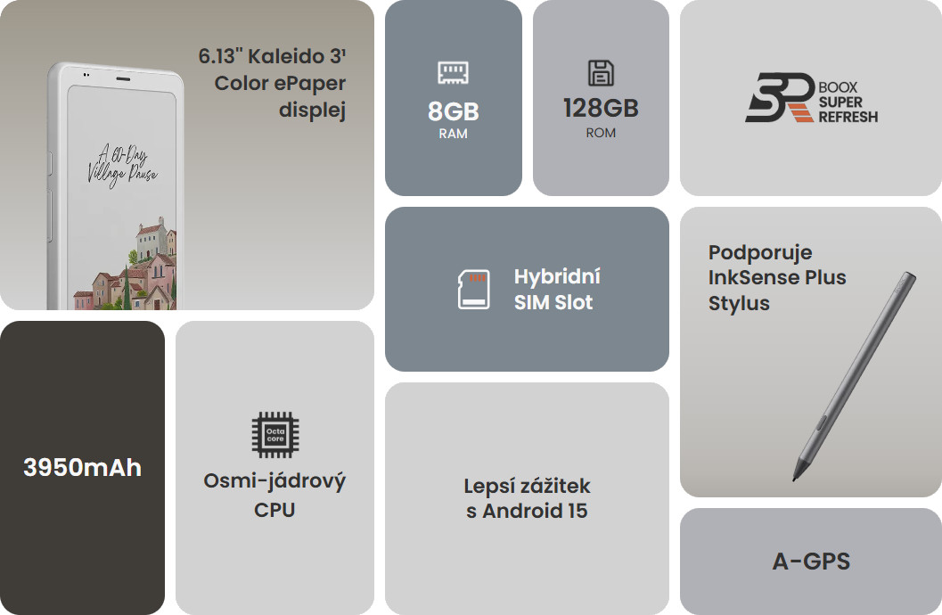 Klidný, přehledný a uživatelsky orientovaný design. Díky robustnímu osmijádrovému procesoru, 8 GB RAM a technologii BOOX Super Refresh poskytuje plynulý a rychlý výkon přesně tehdy, když ho potřebujete.