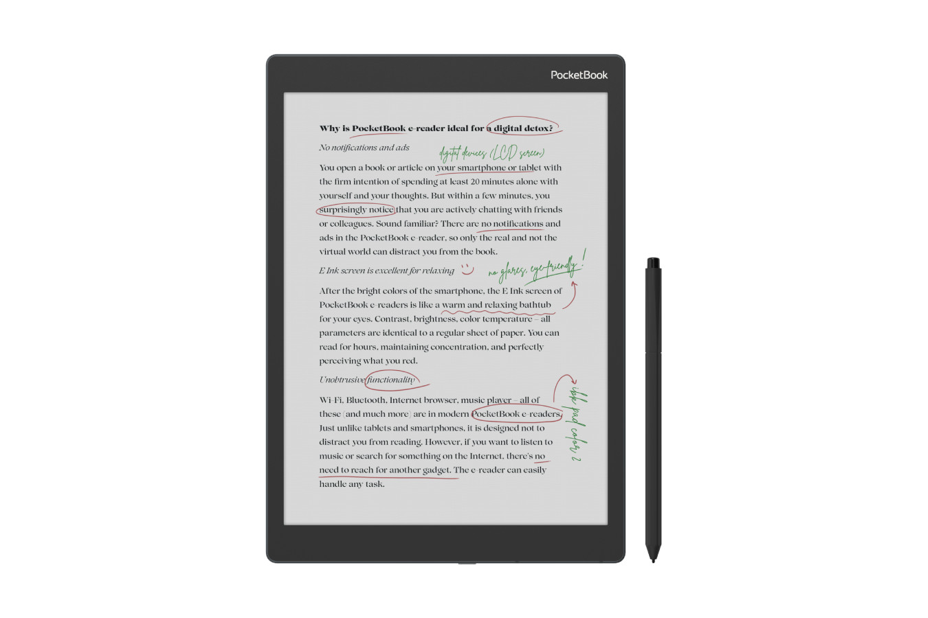 Velký 10,3” barevný displej E Ink Kaleido™ 3, založené na technologii Mobius™, je maximálně šetrný k očím. Neoslňuje a poskytuje dostatek prostoru pro pohodlné psaní a čtení.