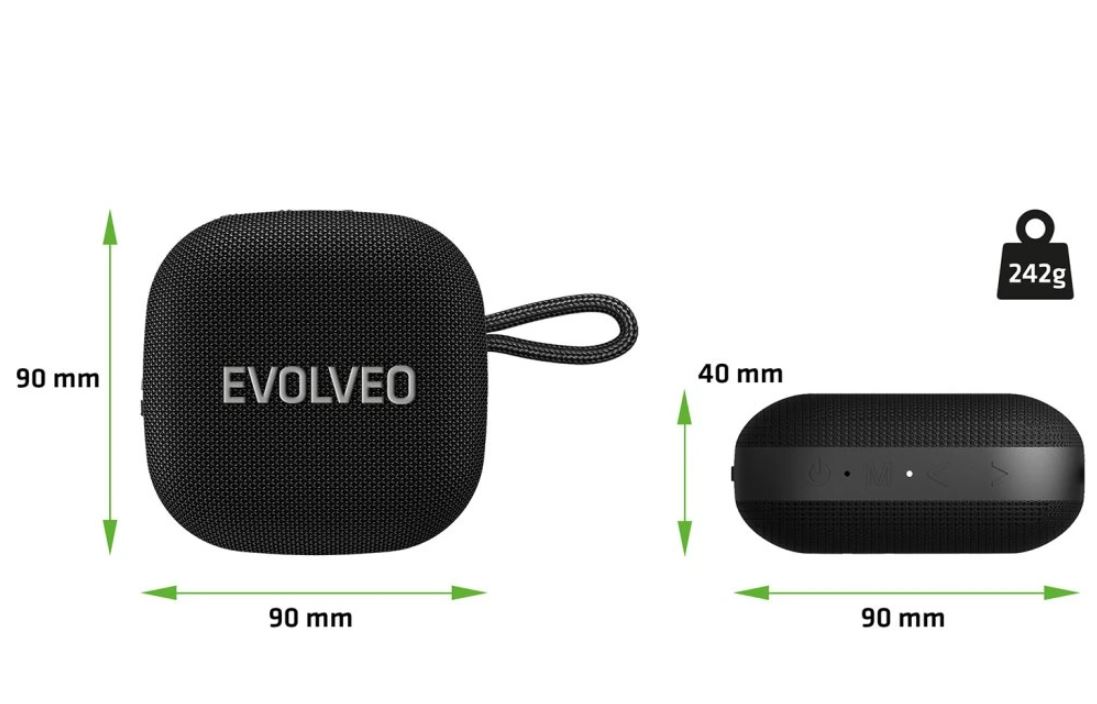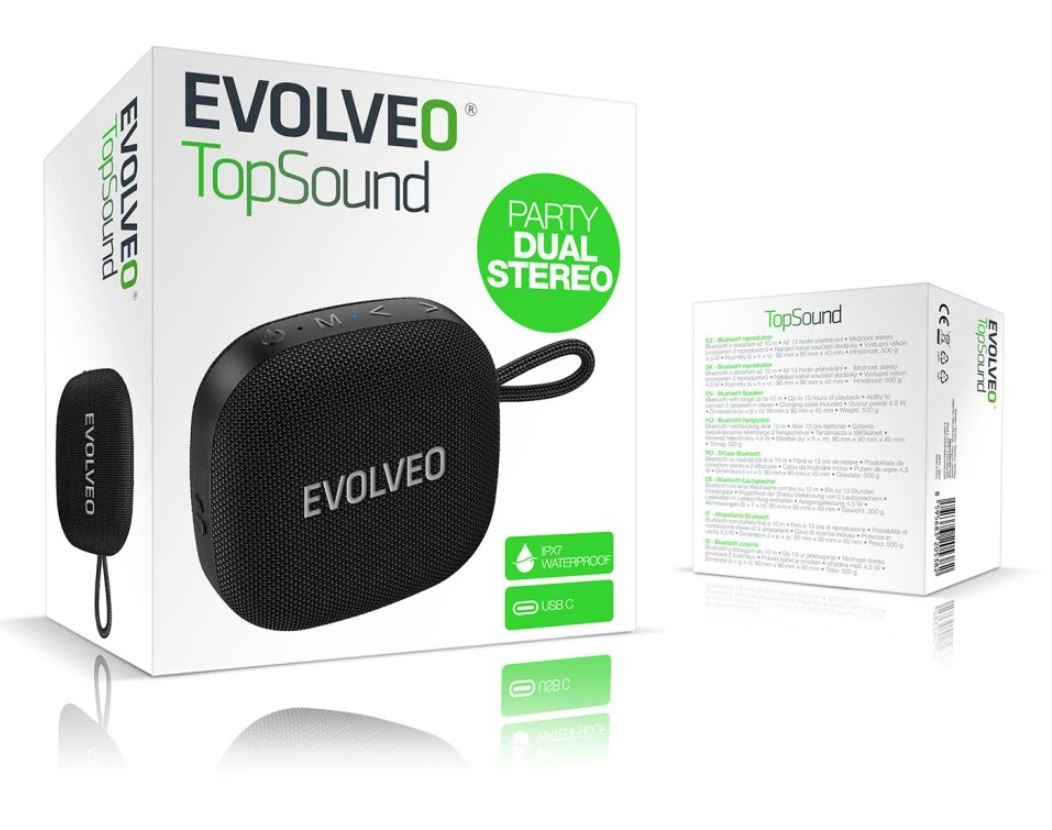 Představte si zařízení, které vám naservíruje skvělou muziku, kdykoliv na ni dostanete chuť. V pohodlí domova, venku za deště i při lenošení na pláži. EVOLVEO TopSound to zvládne s noblesou sobě vlastní. Tento bezdrátový vodotěsný reproduktor s rádiem je zkrátka hudebním parťákem, který vám nikdy neřekne ne – rozeznít vaše oblíbené melodie a zlepšit vám náladu je připraven vždy a všude. S výstupním výkonem 4,5 W a frekvenčním rozsahem od 100 Hz do 20 kHz poskytuje tento kompaktní přenosný reproduktor čistý zvuk s hlučností až 85 dB. I když je tedy docela maličký, muzika s ním může mít pořádné grády.